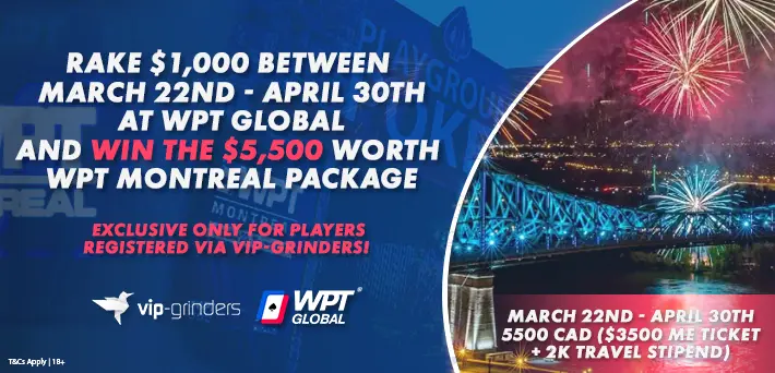 Win a $5,500 CAD package for the WPT Montreal Championship with VIP-Grinders to play at the Main Event with a $2,000,000 CAD guaranteed