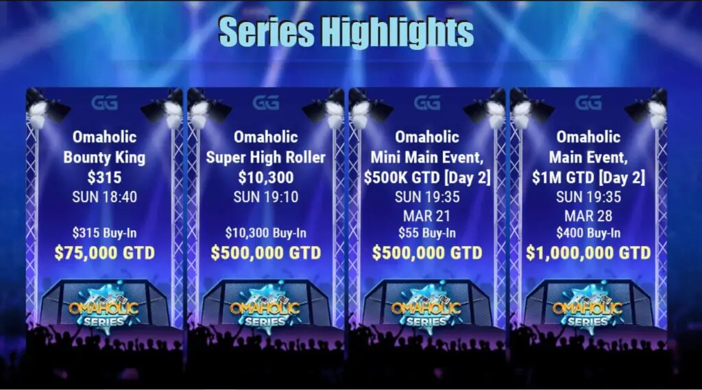 - Omaholic Super High Roller – $10,300 buy-in – Sun, March 14 @ 19:10 GMT – $500K GTD