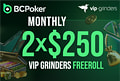 - Monthly freerolls worth thousands in added value, reserved exclusively for VIP-Grinders players.